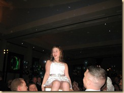 We needed to be back for the celebration by 6:30 for pictures. This party was very fancy and much fun. The fist hour was for the young people only and the DJ got them all up on the dance floor having fun. The adults were having a cocktail hour just outside the party room.